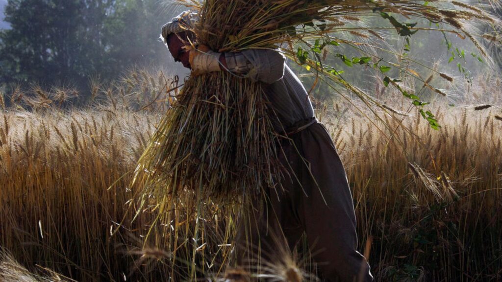 Rolnik zbiera pszenicę w Bamjanie, Afganistan . Fot. Eric Kanalstein / UN Photo.