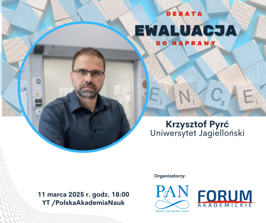 Debata „Ewaluacja do naprawy” zbliża się wielkimi krokami, pora przedstawić kolejnego jej uczestnikach. Prof. Krzysztof Pyrć, twórca i kierownik Pracowni Wirusologii w Małopolskim Centrum Biotechnologii UJ (od 2018 r.) oraz grupy badawczej Virogenetics, Prezes-elekt Fundacji na rzecz Nauki Polskiej. Debata będzie transmitowana na kanale YouTube PAN (11 marca 2025 r., godz. 18:00).