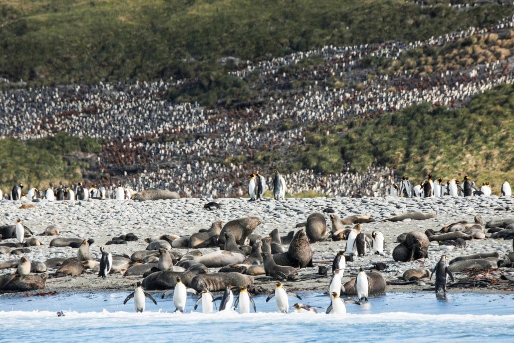 Pingwiny królewskie i haremy uchatek na plaży Salisbury Plain, Georgia Południowa. fot. KERI PASHUK