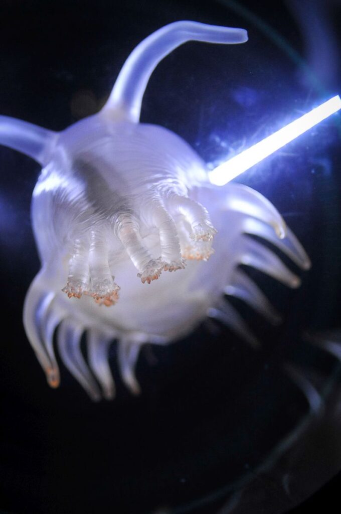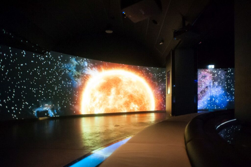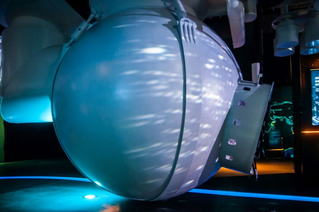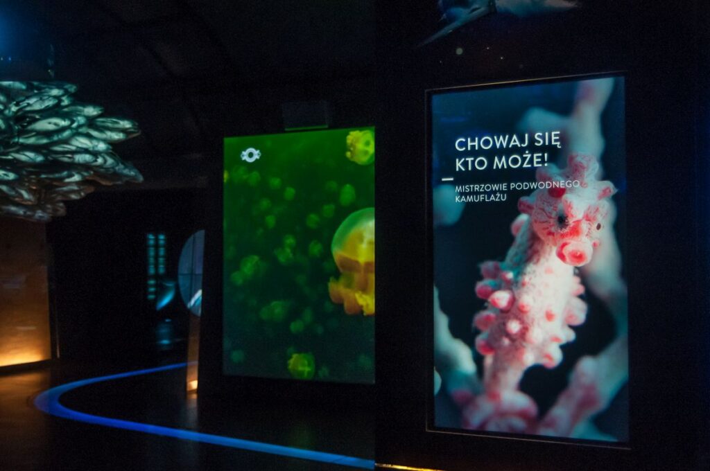 Zwiedzanie zaczyna się od strefy Planeta Wody. To prolog do historii o wodzie, wyświetlany na panoramicznym ekranie 360 st. o długości 65 m. Narrację prowadzi Krystyna Czubówna, która opowiada o narodzinach wody we wszechświecie oraz jej drodze na powierzchnię Ziemi. W strefie Głębiny zanurzamy się tysiące metrów pod powierzchnię oceanów. Wierne modele żyjących tam stworzeń i replika batyskafu Trieste przypominają, jak niewiele wiemy o tym tajemniczym świecie. Ocean Życia odsłania różnorodność organizmów wodnych – od mikroskopijnych po olbrzymie ssaki morskie. Interaktywne instalacje pozwalają zajrzeć w ekosystemy raf koralowych i zrozumieć ich kruchą równowagę. W strefie Człowiek i Woda odkrywamy, że woda to nie tylko składnik naszego ciała, lecz także symbol obecny w kulturze – narodzin, oczyszczenia, sacrum. Prezentowane w strefie statystyki unaoczniają ogromne kontrasty w konsumpcji wody na świecie. Miasto i Woda skłania do refleksji nad wpływem urbanizacji. Poznajemy mechanizmy kanalizacji, zużycie wody we Wrocławiu oraz historię i skalę powodzi tysiąclecia z 1997 roku.