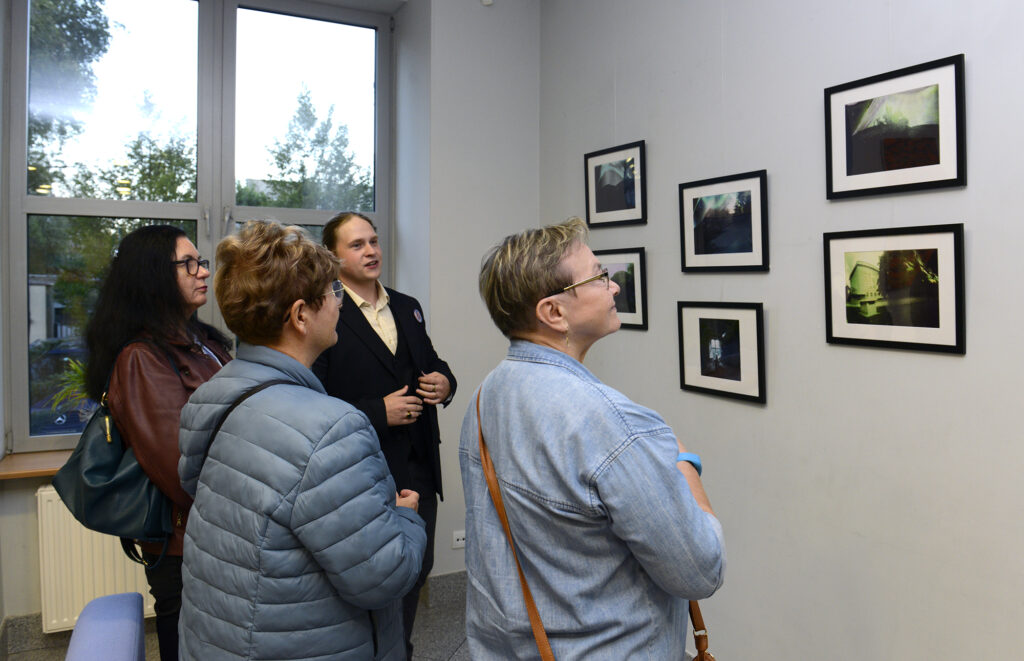 Wśród prac warto zwrócić uwagę na cykl Oskara Wiatera, wykonany techniką fotografii otworkowej. Artysta rozmieścił w przestrzeniach Instytutu niewielkie „camera obscura” i przez dwa miesiące naświetlał obrazy. Rezultatem są wielkoformatowe, delikatnie rozmyte fotografie budynków i wnętrz z zaskakującymi detalami – widać ścieżkę słońca, ale nie widać ludzi. – Proces naświetlania trwa dwa miesiące. Jeśli ktoś przebywa w jednym miejscu godzinę, dwie, trzy czy nawet osiem, jego obraz po prostu się nie zarejestruje – tłumaczy prof. Szewczyk.