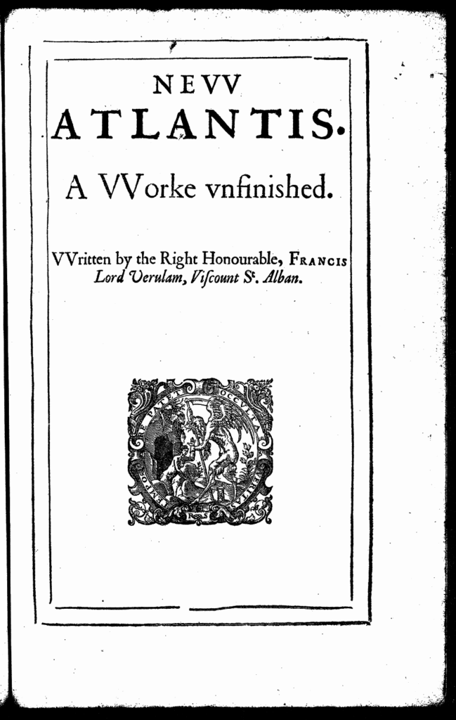 Tytułowa strona Nowej Atlantydy Francisa Bacona z drugiego wydania dzieła Sylva Sylvarum: or A Naturall Historie z1628 roku