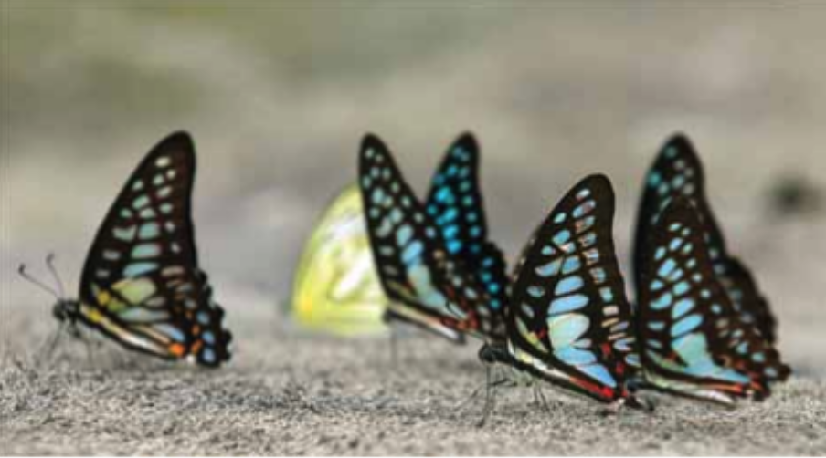 jak sole i inne minerały, jak na przykład ta grupa samców motyli z gatunku Graphium doson w Sabah na Borneo. Zdjęcie: George McGavin