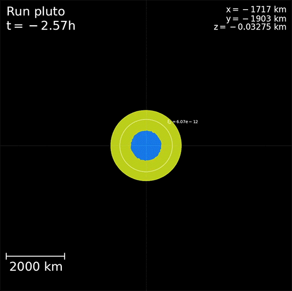 Symulacje Denton pokazały, że zderzenie Plutona i Charona mogło być stosunkowo… delikatne. Charon wszedł w zewnętrzne warstwy Plutona, ale oba obiekty pozostały w dużej mierze nienaruszone. Następnie na krótko obracały się razem jak jedno ciało, po czym siły związane z rotacją Plutona zaczęły oddzielać mniejszy obiekt.