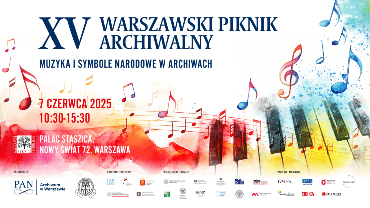 7 czerwca Pałac Staszica w Warszawie zamieni się w przestrzeń wystaw, koncertów, wykładów i gier historycznych. „Muzyka i symbole narodowe w archiwach” to temat przewodni XV Warszawskiego Pikniku Archiwalnego